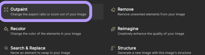 Definition: This tool extends the boundaries of an image, using generative context to fill new space while matching the original style and texture.