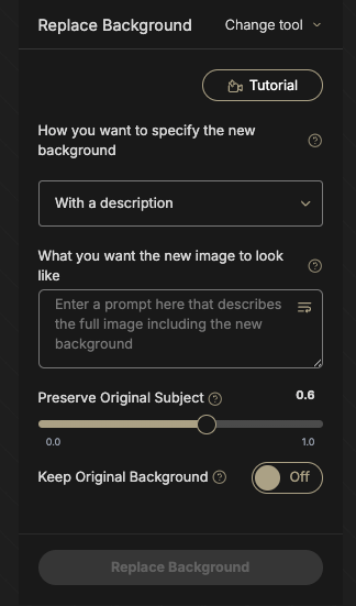 - Lighting Harmony: Use the Relighting Slider (0.0 to 1.0 scale) to adjust the subject's lighting to match the new background.