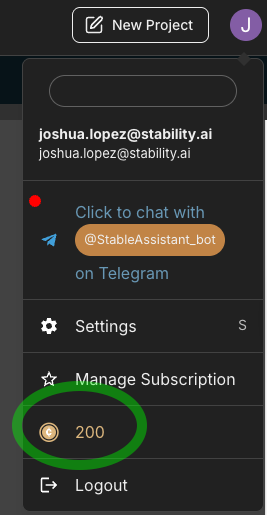 - Log in to your Stable Audio account. At the top right you will find your remaining generations (as shown below). Subtract this from your current plan's allowance to determine your usage.